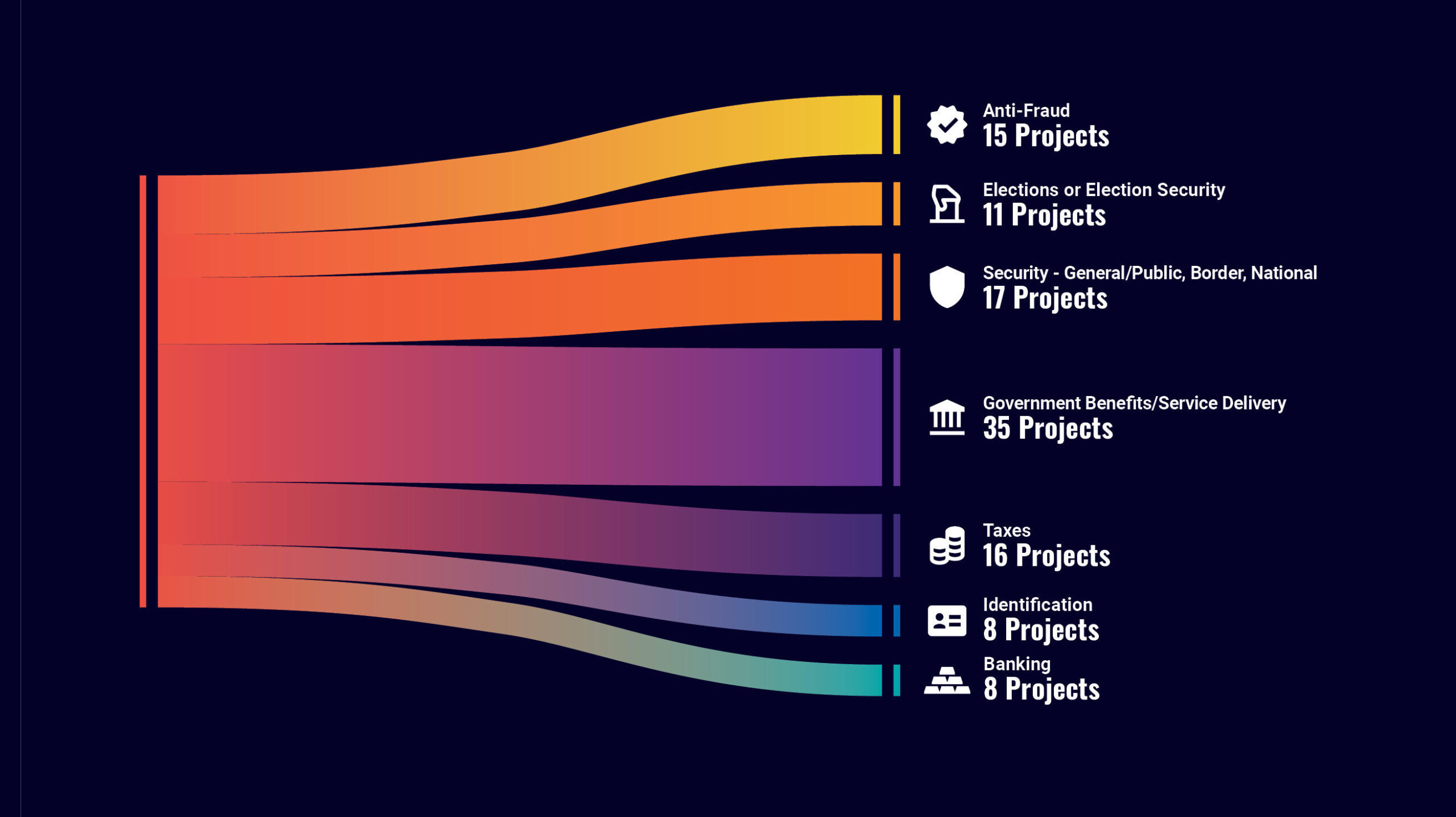 Stated Purposes or Goals of Digital ID Projects. Though the stated goals of digital-identity management vary, these programs typically aim to create a single digital identity—a unique identification number—for residents (or sometimes only citizens) in an area or a country in order to grant access to particular services or rights. This graphic highlights some of the common stated goals or purposes of current or planned digital ID projects.